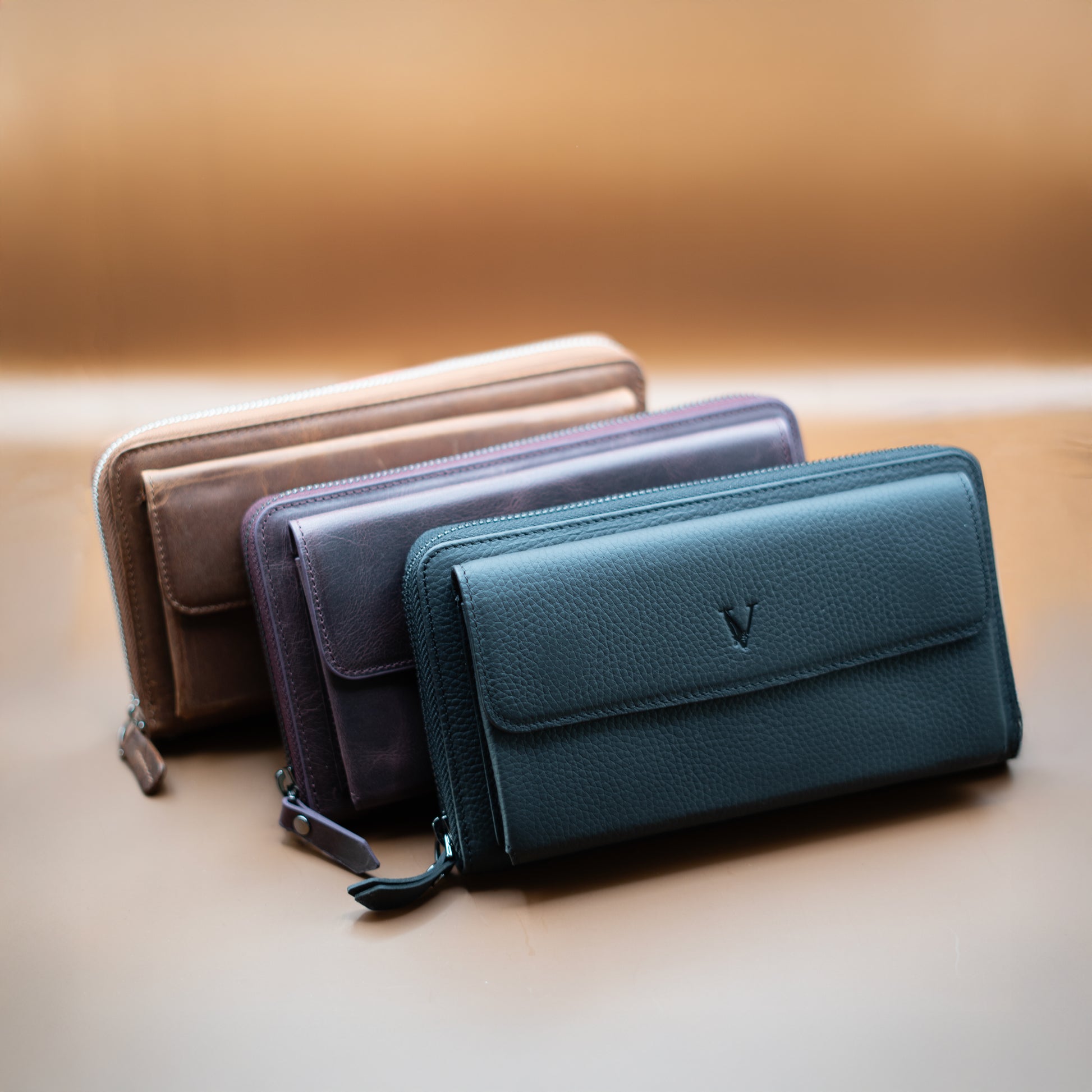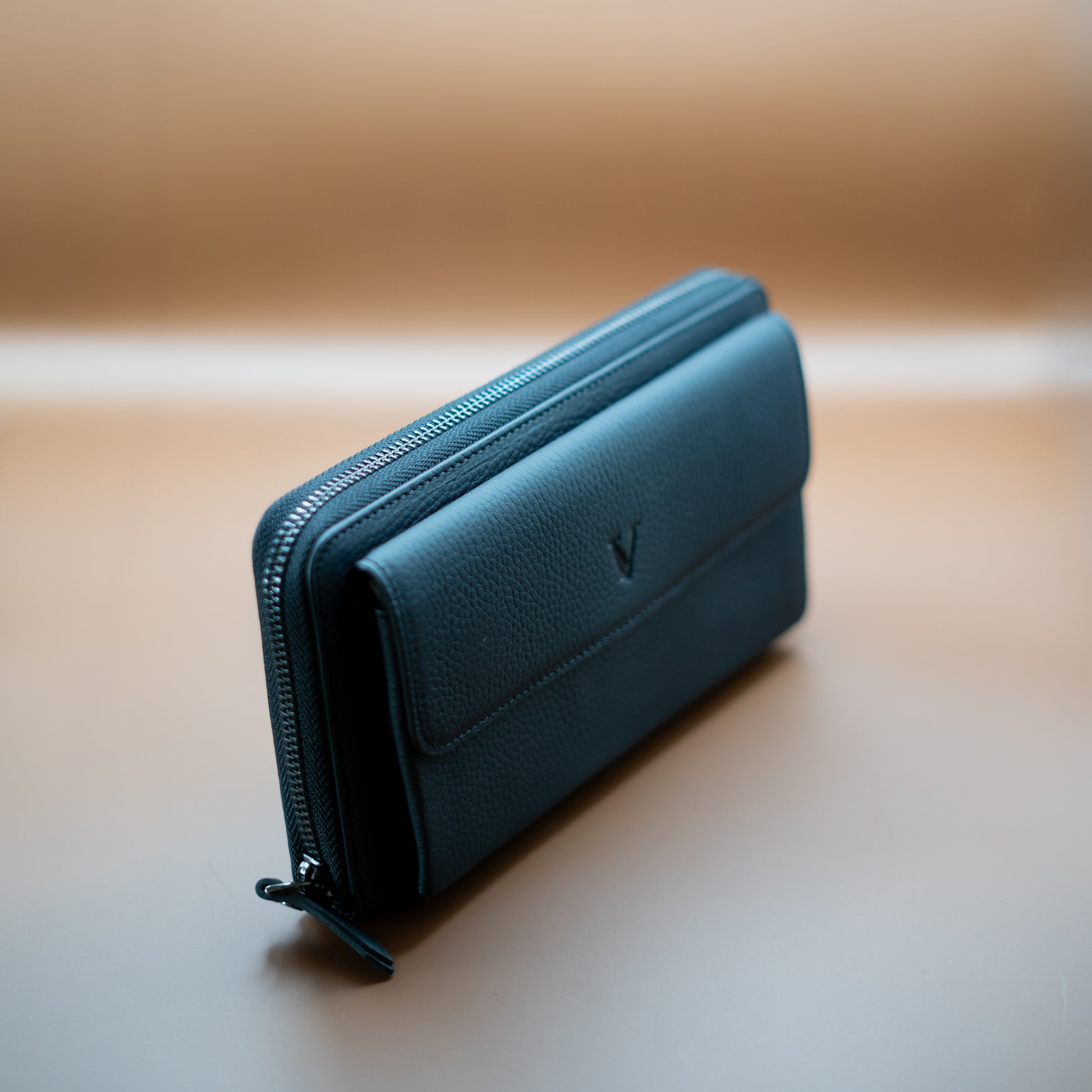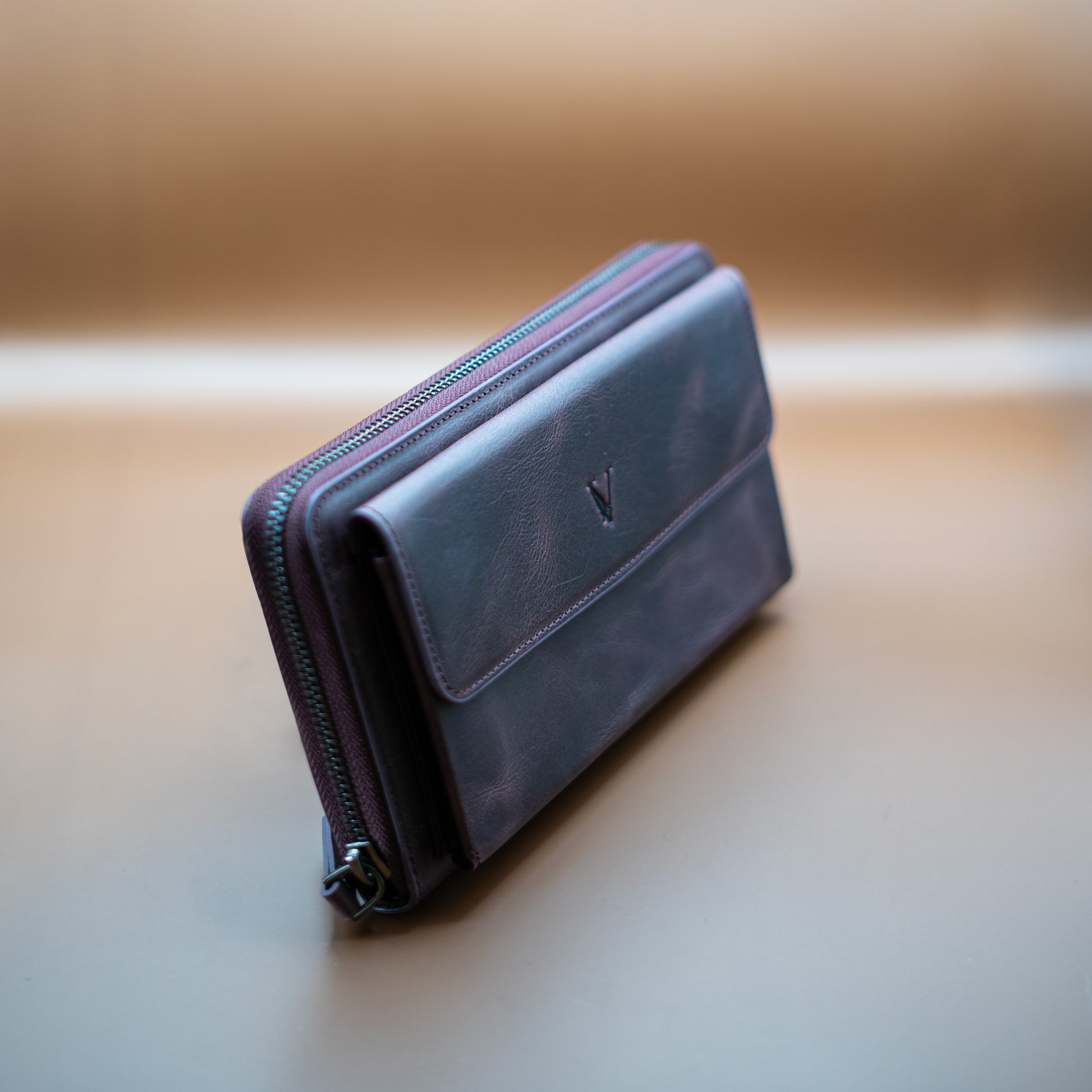 Une pochette en cuir tout-en-un conçue pour simplifier le transport quotidien.